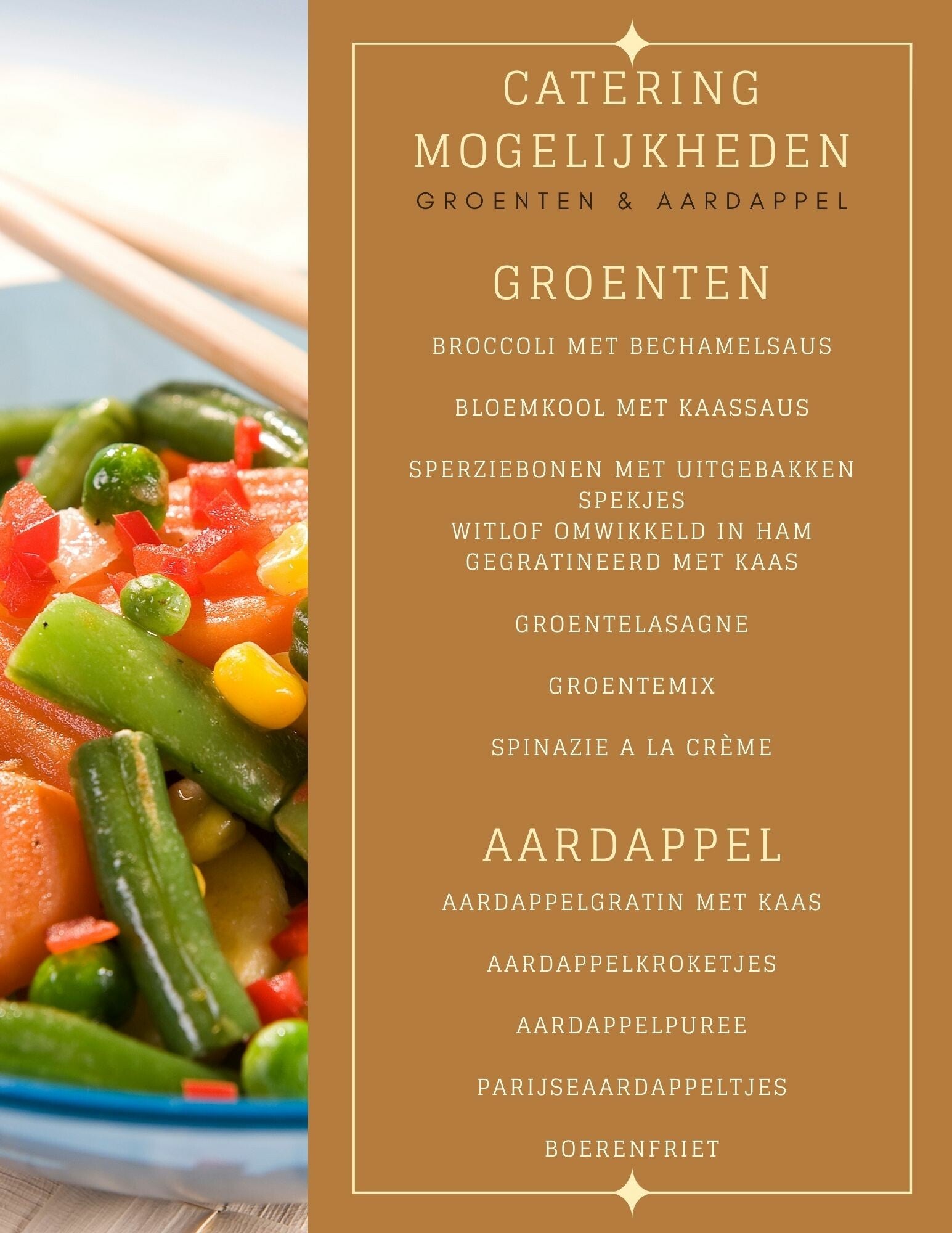 Wij hebben voor u de meest gangbare menu's op een rij gezet maar er is zeker meer mogelijk, klik op de afbeelding om deze te vergroten